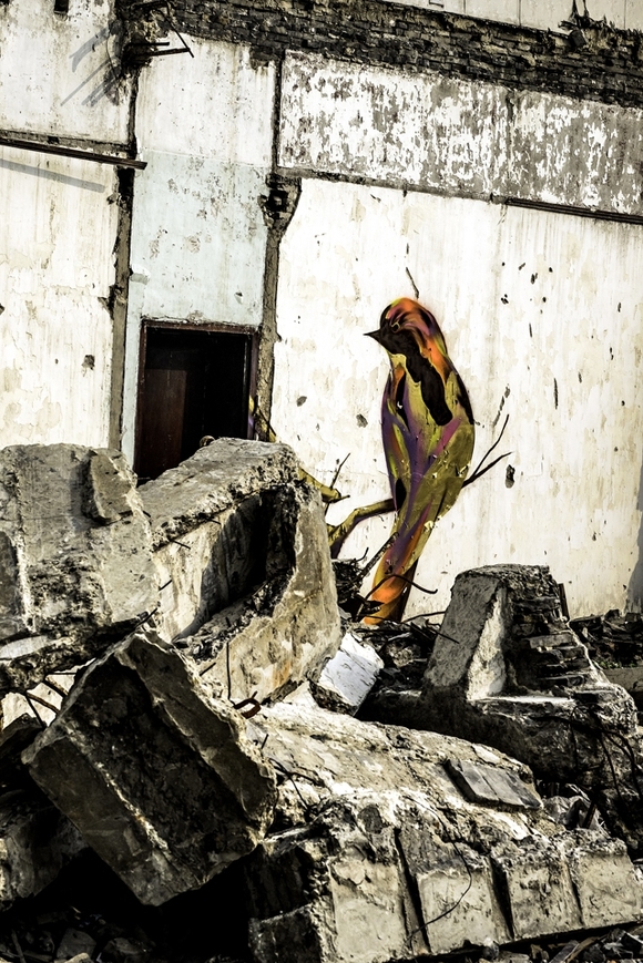 Graham Fink:整个中国都在拆拆拆,为将来的建建建做准备。摩天大楼、写字楼,中国人正在适应一种新的生活方式。因此,会有越来越多的旧房被推倒,产生越来越多的碎石堆。涂鸦艺术家们把破旧的墙面当成画布,政府定期会来清理这些涂鸦。艺术家们重新画上,政府再把它们清掉。墙面越来越破败。