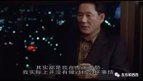 北野武发誓再也不回家,但母亲有了他的电话,从那以后,过两三个月必定打来要钱,每个月要20万日元零用钱,北野武公开骂母亲“吸血鬼”。 他跟母亲一样性格暴烈,不但是影剧版名人,还一直上社会版。每次闹新闻,媒体就请出他母亲发言,两人不见面隔空喊话。 有周刊拍到他跟年轻女星偷情,他带徒弟大闹杂志社,因为打人被逮捕,震惊全日本。武妈放话:要判刑的话,就判死刑吧! 他被经纪公司扫地出门,才用心做电影,第一部电影就飙红,被看作日本电影的希望,他恃才傲物,行为越来越不羁。 47岁那年差点“自杀”。半夜喝酒,没戴安全帽就骑摩托车飙车。在不清醒中撞上了护栏,好在没出大事,但这场车祸造成半边脸面瘫。 媒体还在替他庆幸,武妈又非常人逻辑的发话了:“你有保时捷吧,干嘛骑那种自行车似的小玩意!” 他的电影里经常有暴力 《大佬》里的硬汉 母子俩就这么公开洒狗血,北野武越来越牛、电影部部大卖,母亲越来越贪。她住院养病盯着要钱,进账稍迟就破口大骂,北野武几乎不去探病,到母亲去世也不想奔丧。 然而,在兄姐规劝下勉强去葬礼,他却放声痛哭,时间之长占据全天综艺名人节目画面,连外界都察觉:这是母子俩相爱相杀的最终回。 接受访谈承认自己闹新闻也是虚张声势 之后,姐姐交给北野武一个脏脏的袋子,是母亲独独留给他的: