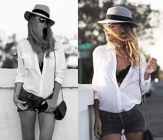 教女人变洋气! 简单不过的吊带,表现无可言喻的性感和充沛的活力。黑色bra,性感潮流中的永恒的潮流单品……这个夏天,让我们来点不一样的style~内衣性感走起! 深V领:能让你的颈部线条显得更加修长。 若领口太低,内搭配黑色Bra就能性感的解决走光问题。 外露一点蕾丝边:微微露出蕾丝边性感的刚刚好,当然,这非常考究蕾丝的质量和外观,几十块跟几百块的内衣质量和外形肯定没法比。 内衣不能太随便,女人要对自己好点! 解开衬衫的三粒扣:搭配衬衫时 侧露:侧面隐约忽现的美,性感不自觉就侵袭别人的眼睛! 最霸气的穿法,敞开外套:这种直接把内衣当Crop tops的穿法真的好需要勇气,展示性感的同时记得披一件硬朗的外套。 若隐若现是最高级的性感:无论怎样的款式,在你搭上透明薄纱的那一瞬间性感就会立现。 多带式黑色Bra:细带缠绕,交织成神秘的细节,美得无法隐藏。 |
