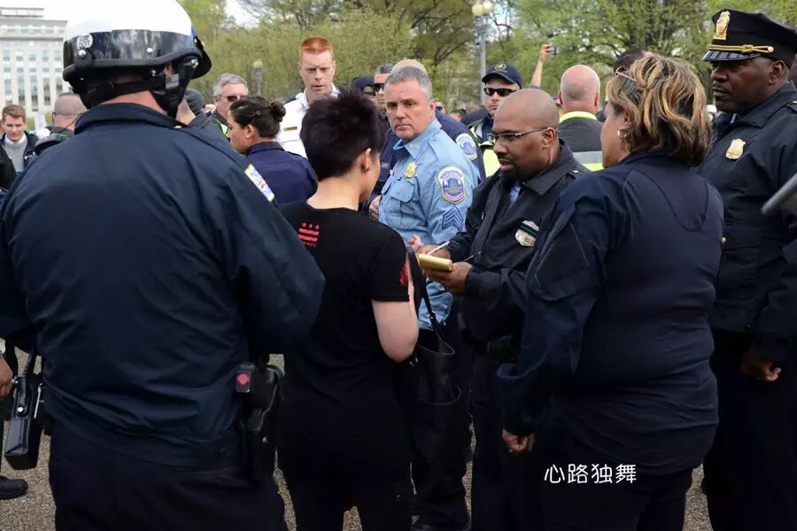 白宫特工和白宫前拉斐尔公园(Lafayette Park)的警察只在边上严密观察,对他们的做法基本“放任”, 我看到只有两个活动家被纸面警告。