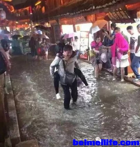 , p* Z; S. z2 Y! Z- Y" [8月12日,云南丽江突发暴雨,短短不到一小时,城区街道变成一片“汪洋”。(网络图片)