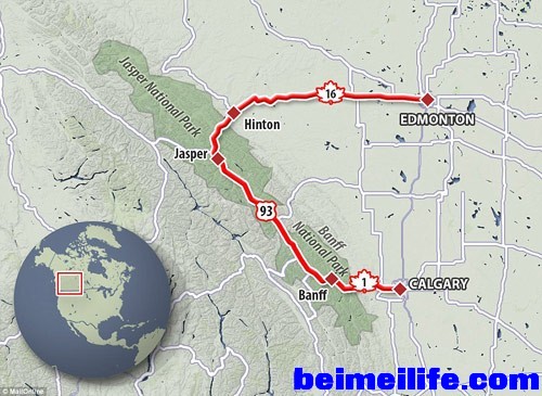 ! ^$ K1 \" Z" w6 J+ G, i加拿大阿尔伯塔省冰原公路 . g/ U! w2 u6 @, Q) L! M/ V5 k