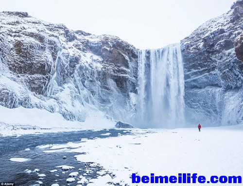 冰岛环城公路囊括了世界上最令人惊异的风景。从海湾,地热池,黑沙海滩到火山,这座神奇的岛屿上,有您能看见的最美的自然风光,史克卡瀑布在冬季尤其美丽。