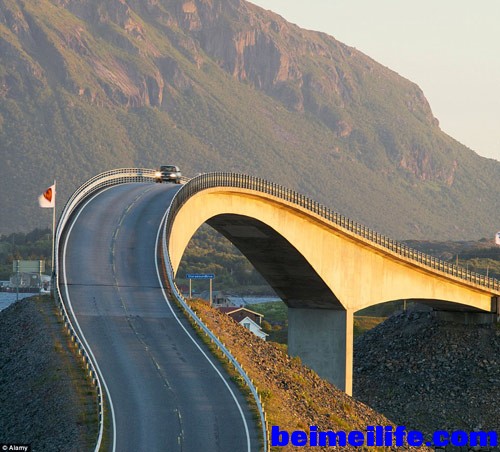 极美曲线:挪威大西洋公路上有标志性的通天桥。这条路线上能够直接看到大西洋,尽情领略大洋风光。, {* B7 f- F2 _! E/ \