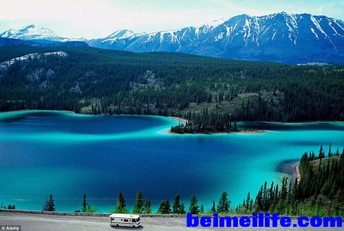 慕口湖如同被施了魔法般湛蓝无比,在阿拉斯加高速公路上就能看见她。驱车穿过雪顶山脉,在秋季,这里总是一片金黄。