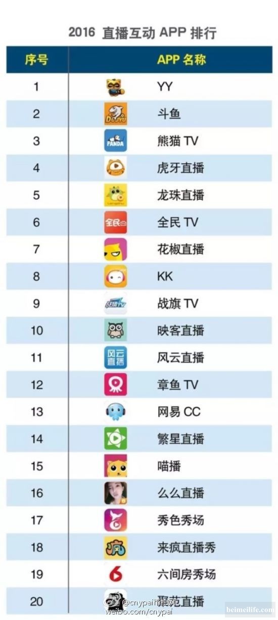 标题: 泛娱乐直播APP排行榜,花椒第一映客第二 [打印本页]