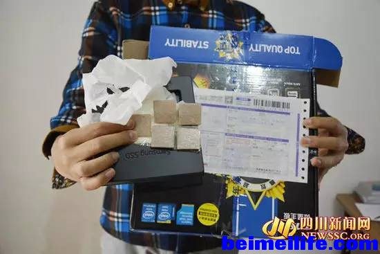 果不其然,次日上午便有“假货”的案例被媒体踢曝。家住成都青羊区苏坡立交附近的一名成都男子“双十一”里为省10块钱在天猫花339元网购了电脑硬盘,不料收到的却是五块瓷砖(见下图),随后与商家的交涉也特别不顺,客服回应称发货没问题,有可能是快递私自动了包裹。因交涉不成,加上退款申请失败,无奈之下买主只好向辖区的青羊警方报了案,并得到受理。我以前听说的多还是假冒名牌或劣质商品,这一次居然到了敢拿“纸巾里裹着小石头”冒充硬盘的程度,我忍不住去猜想那些“剁手”的人中背不住还会有什么更奇葩的遭遇。
