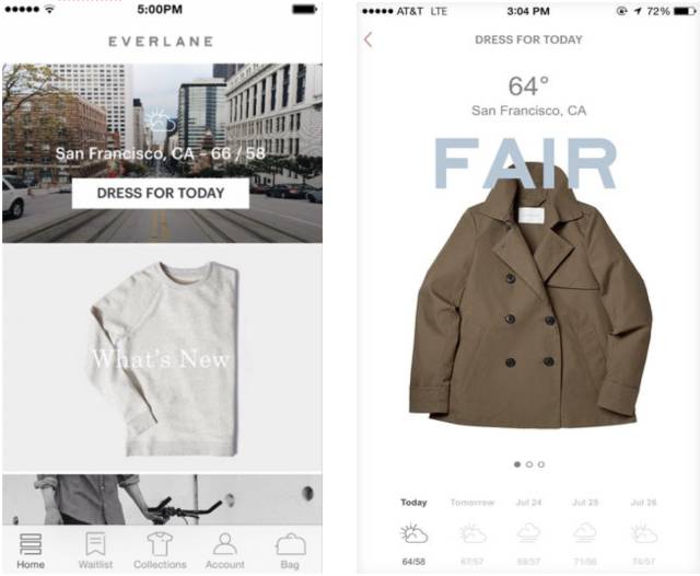在Everlane上不仅可以提前看到最新款,下单付款速度也要比实体店快出两倍。更有最新推出的“weather”功能,自动侦测当地天气,为你贴心推荐每日穿搭。省时省力,让你轻轻松松引领时尚潮流。