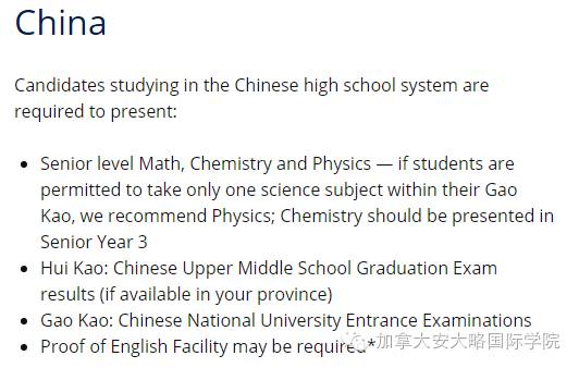 我们再看一下加拿大多伦多大学对加拿大境内的高中毕业生,申请要求: