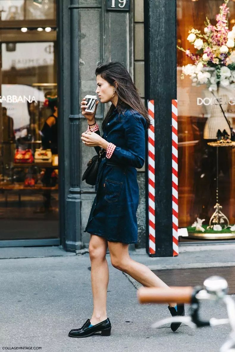. c" S: ^' X) Y一身牛仔与方跟乐福鞋的搭配很好的诠释了英伦风,秋天这样搭清爽。