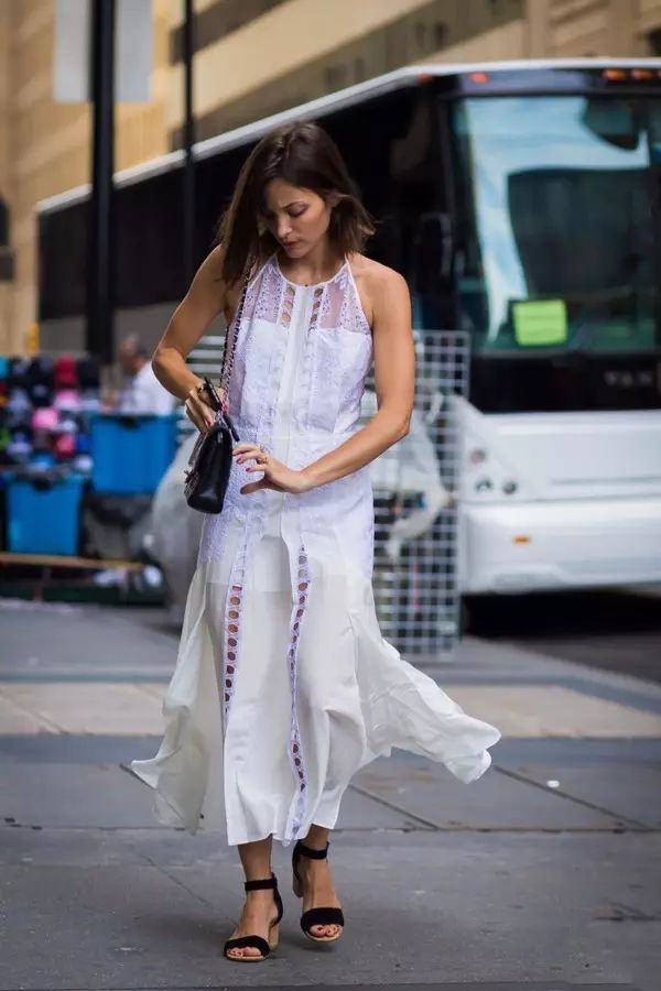 一字肩优雅H型长裙搭配小方跟,既不累脚又凸显气质。+ L! t1 s, O5 m- h