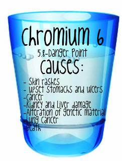 目前全美仅加利福尼亚州对于饮用水中的六铬含量制定了不超过一亿分之一(10 ppb)的标准。但这依然是加州环境健康危害评估办公室推荐的千亿分之二(0.02 ppb)含量的500倍!
