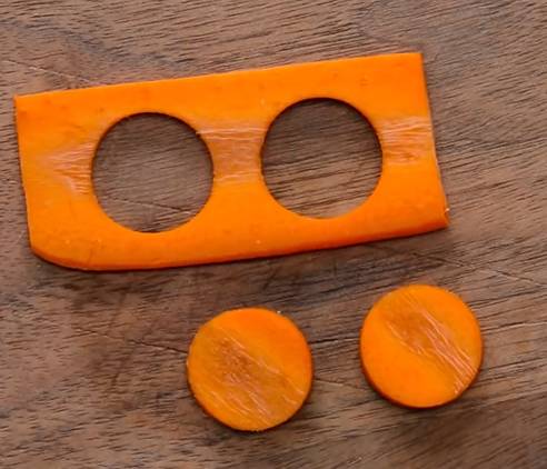 1.胡萝卜用模具抠出胡萝卜圆片。