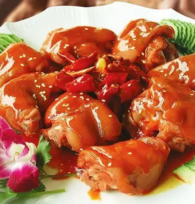 5、大火烧开转小火至猪蹄熟烂即可收汁。