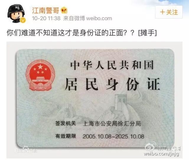 在钱包、皮夹里……你是不是把自己头像一面朝外放置,并且理所当然地觉得有个人信息的一面就是正面?但真是这样吗?微博网友@江南警哥最近发布的一条关于身份证的“冷知识”,引起了网友们的广泛讨论……