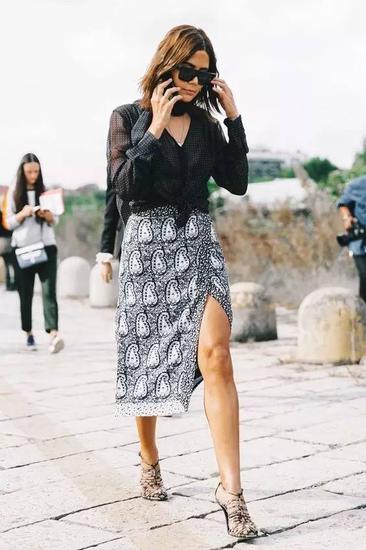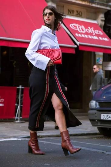 性感俏皮开衩裙 + 修身衬衫, f! x- C# b; Y* R' Q
