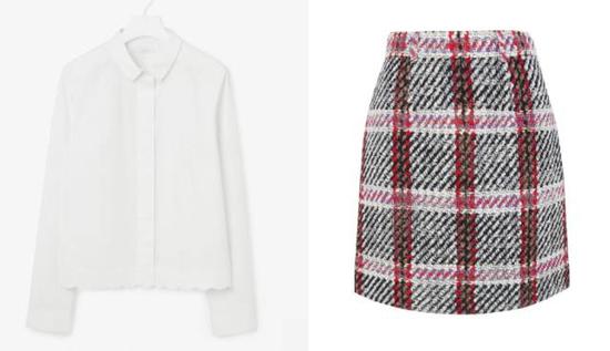 Cos 波浪边衬衫;Carven 格子花呢半身裙4 I7 @8 X) b7 B9 O" n+ t" m+ \4 ~