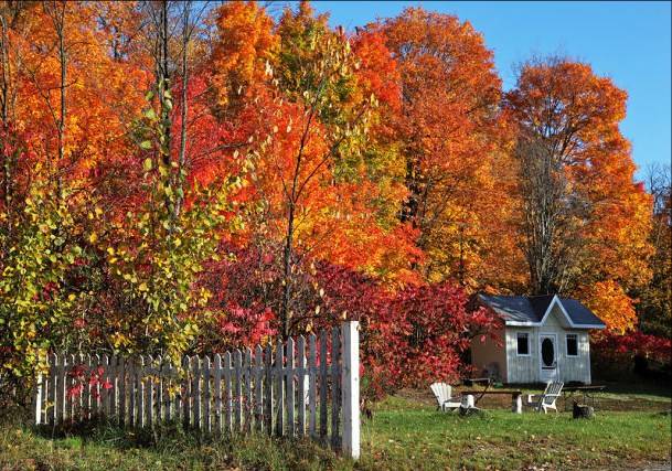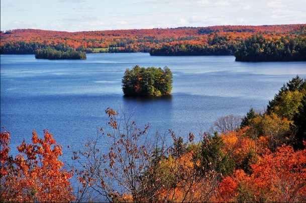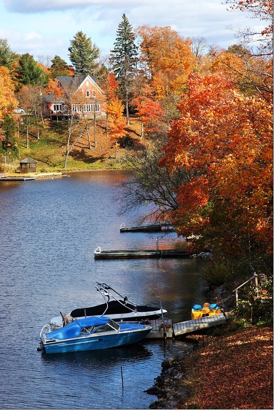 临近公园的马斯科卡(Muskoka)地区, 是加拿大的著名度假地,五千多平方公里的土地上,星罗棋布地点缀着1600多个湖。 道路两旁,漫天的红叶中掩映着一座座漂亮的小屋, 安静美丽得如同世外桃源。