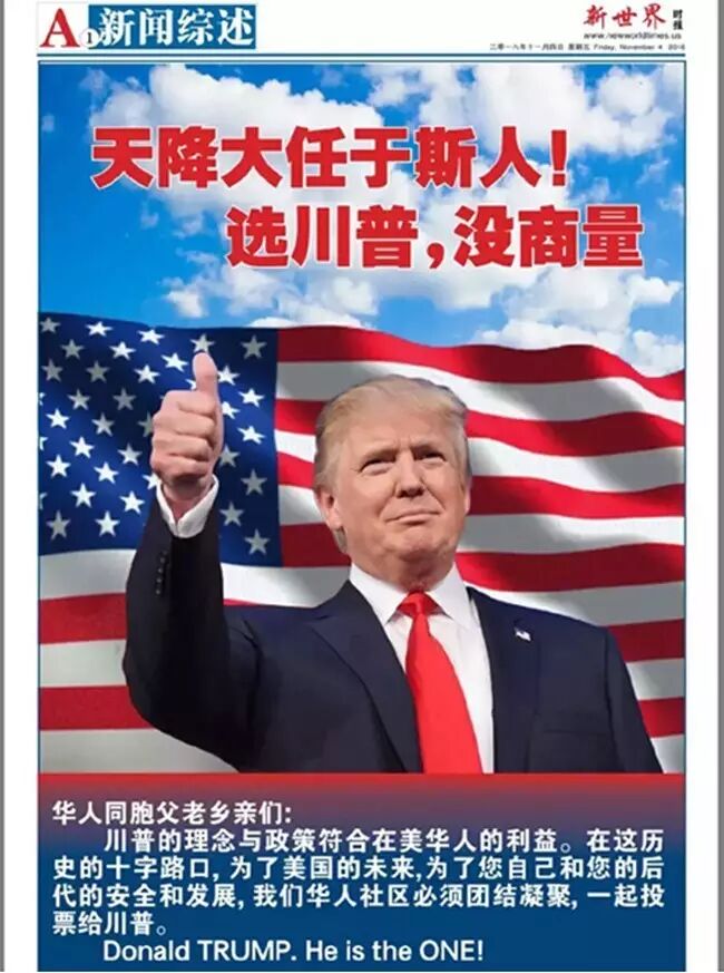 2016年美国大选的最后一章正式拉开帷幕。像一场持续了一年多的嘉年华,行将落幕。同时,它又像社会的假面:打打嘴炮,向天空举拳,引得众人一呼百应,或许只是哗众取宠。至于美国社会的问题,显然不会因为特朗普和希拉里的“互殴”得到解决。喧嚣之中,一个群体看上去尤为沉默,明明置身暴风眼中央,却投射出“漠不关心”的尴尬身影。他们分享着共同的身份标签——美国华裔。