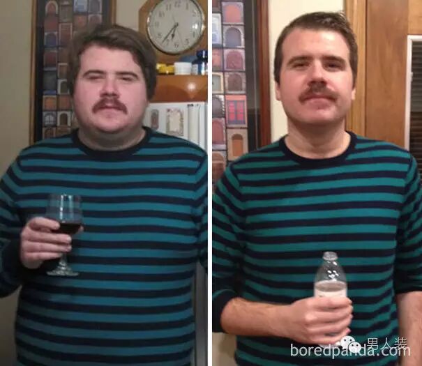 + O7 d0 D( \( I* R3 a9 {boredpanda网站向用户征集了一些酒鬼的戒酒前后对比照。明显能看到他们酗酒时一个个像充过气,皮肤发红长痘;戒酒后容光焕发,颜值瞬间飙升。$ ^' d- X* y4 v) l8 z1 d