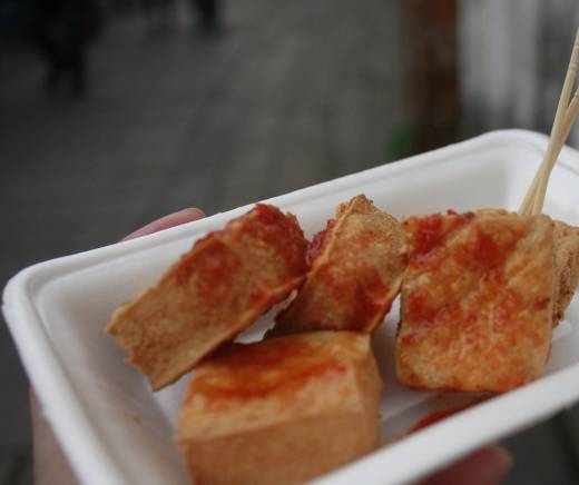 夜色笼罩下的山塘街显得格外的迷人,欣赏夜色,边走边逛当然少不了山塘街的臭豆腐相伴,不过想吃到美味的臭豆腐可是要付出代价的,因为店门口永远是长队漫漫。
