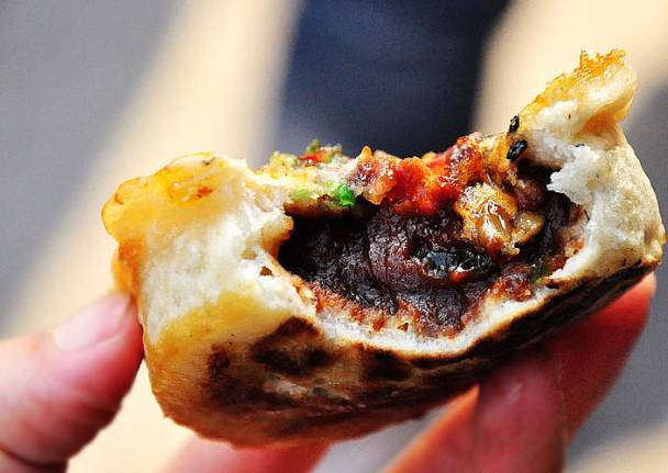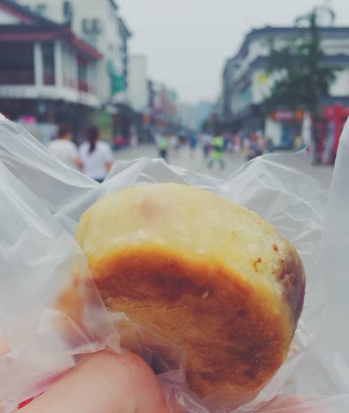 在广济南路拥挤的人潮和匆匆车流间,热乎乎的鲜肉月饼,在街角静静的等待着。