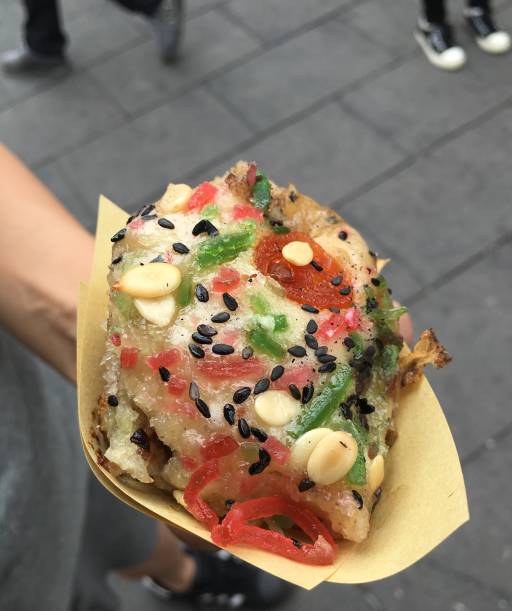 日规路永林菜场旁的萝卜丝饼,刚出炉的时候忍着烫咬一口真是唇齿留香。9 \% G; f+ a- I& r+ j