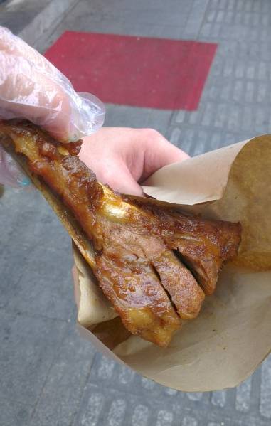 + P% u4 e, A. J; W山塘街85号赵元章肉骨烧,他家的扇骨是最受欢迎的。据说他们家的产品都是先在老卤里煮到半成熟,然后顾客到店里点单后再加工,所以很鲜香入味。" O; }' w# y5 P) i