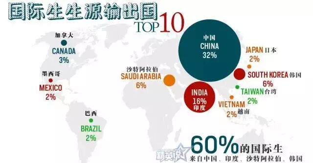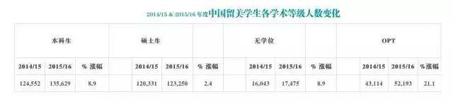 Open Doors数据表明,赴美就读本科427313人,达整体国际学生总数的40.9%,增幅7.1%,读研人数为383,935人,增长6.0%。在很长一段时间中,研究生一直是国际学生赴美留学的主流,但如今本科生的数量持续大幅度上涨,与其他学术阶段的人数差距越来越大,再次证实留学低龄化已成现实。