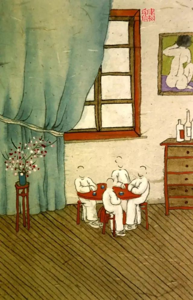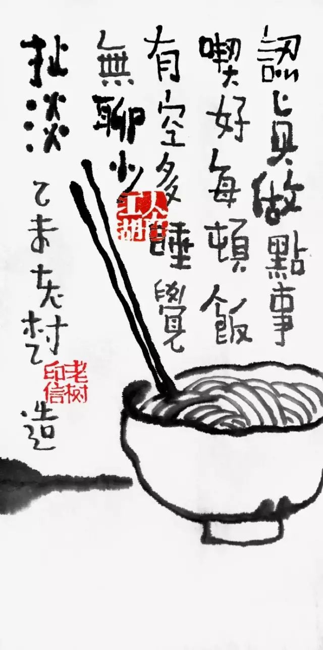 % [, d7 M5 } l3 m虽然老树的画很有趣,但他其实并不是画画的,而是一名老师。用简洁风趣的书画表现形式,诠释着他对生活的点滴感悟,就像记日记一样。