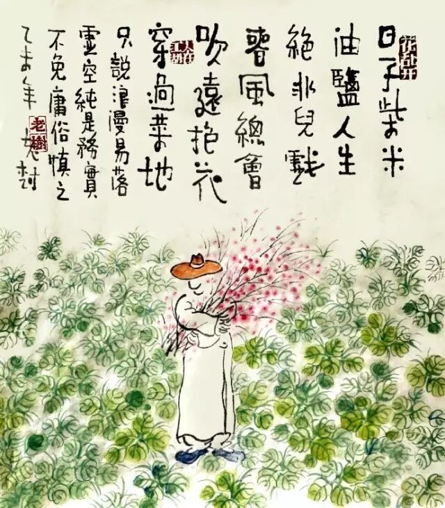 $ n E9 }0 j g$ K看老树的画,读他的诗,能很自然的体会到一种自由而又随性的人生态度。嬉笑怒骂的背后,却是满满的对人生的思考。