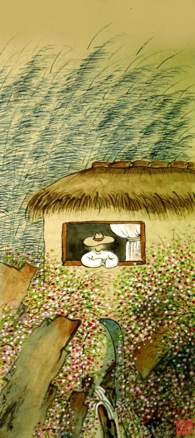 借居溪上茅舍,看花听雨听风。