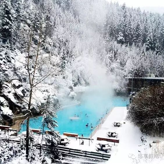 冬天泡温泉不管在哪都是人生的乐事之一,特别是户外的温泉,在严寒之中步入到温暖的池水中,绝对让你的幸福感加倍!加拿大有许多泡温泉的好地方,在暖和的温泉水中,一边喝点饮料,一边欣赏周围的雪景,让温泉洗刷去平日的疲惫,想想也是醉了呢!