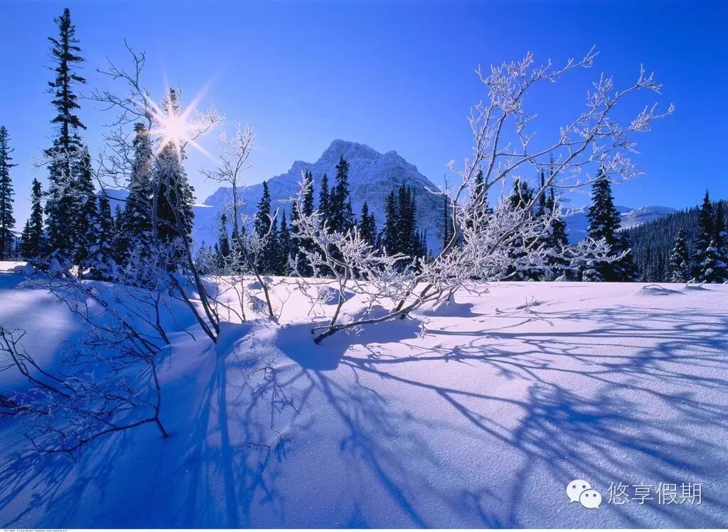 如果说春日的加拿大是生机、夏季的加拿大是活力、秋季的加拿大是色彩,那么冬季的加拿大一定是最美的一篇童话,最动人的诗篇。那些平时并不显得如何特别的地方,一旦披上皑皑白雪,也都变得值得一看;更不要提本身就“大而美”的国度加拿大,清澈的天空、纯白的大雪、晶莹的冰川、封冻的水面、树枝上的霜雾,每一幕都是让人十分感动的美。