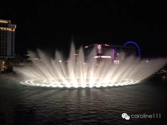 酒店外的人造火山每天19:00到23:00,每小时喷发一次,届时拉斯维加斯大道人山人海,在对面的威尼斯人酒店也能看到。6 p& P/ G1 q9 Y" f2 |8 ] d' A