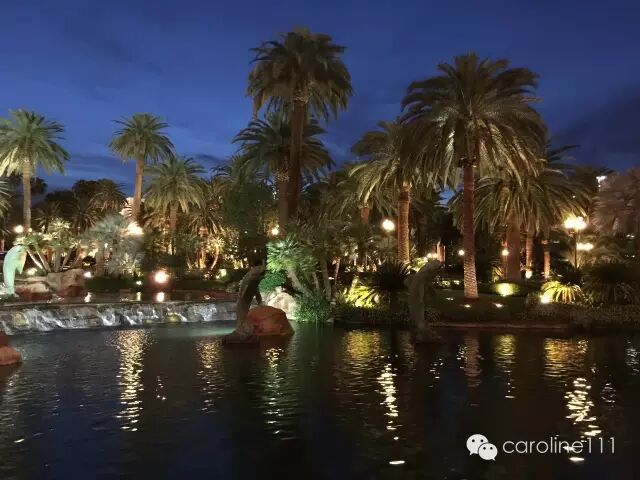 拉斯维加斯米拉奇酒店 The Mirage,火山爆发表演(火山爆发全过程视频摄录,没拍照片)。这座酒店又称海市蜃楼,最出名的是酒店内花园中饲养着罕见的白虎、白狮以及美洲豹、雪豹等珍稀动物。酒店大堂有一座巨型水箱,有鲨鱼和各种鱼类畅游其中,另有1000多种以上的珊瑚礁,值得观赏。