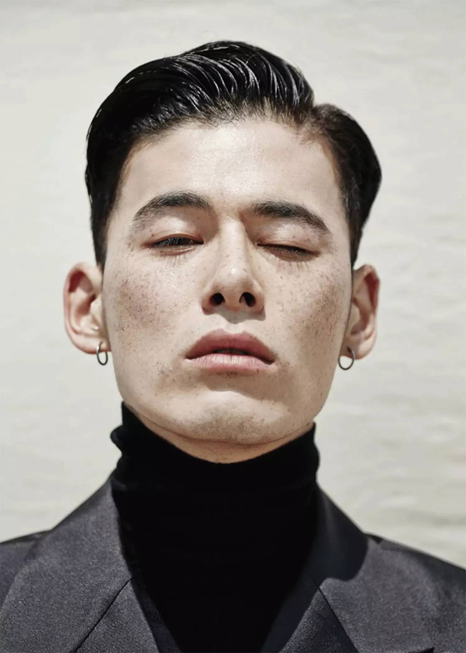 * k- r" V: M% [0 w, H$ D# t头发「留厚」一点,不打理就会变成一坨,但稍加打理就会很适合造型,比如梳个油头。