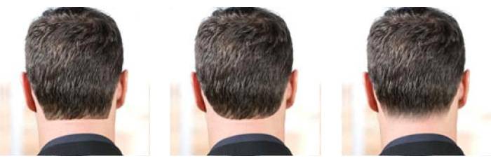 想避免意外,你就得提前主动告知发型师自己想要的发型。后颈发型从左到右主要分三种:线型、圆型、削薄型。