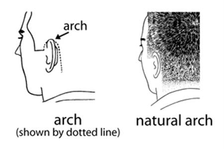 除了鬓角,耳朵上部的头发也值得关注,英文称arch。
