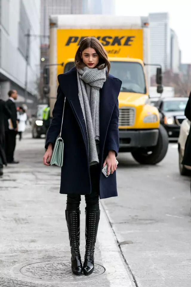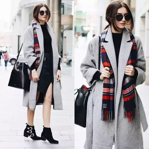 若你正好有件驼色的毛呢大衣,可一定要找出黑灰围巾来优雅装扮下哦~
