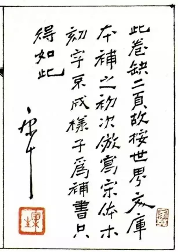 康生好学、有才,这点不可否认。康生其人,用黄永玉的话说,“还是有点品位的”。才子田家英目下无尘,独独对康生青眼有加。三联2002版的《田家英与小莽苍苍斋》里面,就收有康生的字迹。康生在养病期间,曾送给田家英一套明代天启年版的《醒世恒言》。康生特意为补页作了个説明:“此卷缺二页,故按世界文库本补之,初次仿写宋体木刻字,不成样子,为补书只得如此。康生”。如下: