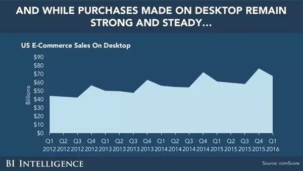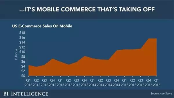 & r3 |8 a5 c6 H1 z; G3 P. A网购慢慢的分化为手机购物,手机购物如今成为了新的王者,从2012年到2016年,都在稳步增长。