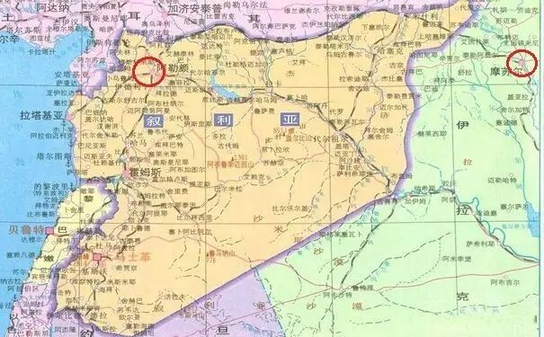 左边红圈为叙利亚阿勒颇,右边红圈为伊拉克摩苏尔