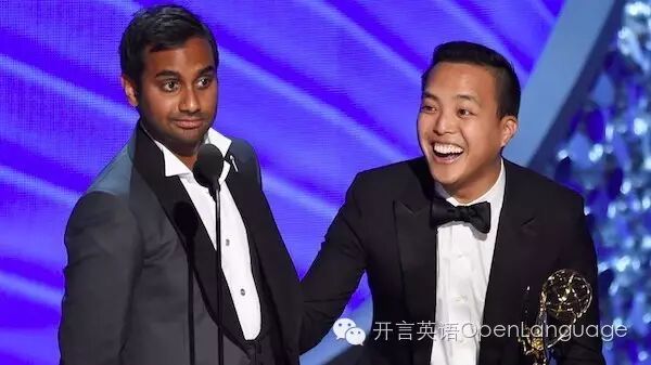The show's co-creators Alan Yang and Aziz Ansari won best writing for a comedy series:这部戏的编剧Alan Yang和Aziz Ansari赢得了这次艾美奖的最佳喜剧类编剧! `+ C+ e" p9 s8 {4 L3 P _