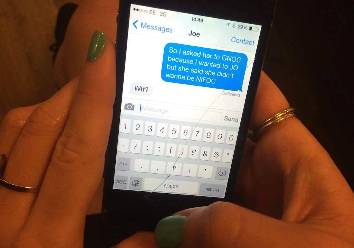 + Z3 _ d- w6 H: P对于成年人,收到sexting信息不是稀奇事,我们留学生是好学的,对于这种美帝流行文化也要抱着学习的态度来批判性地了解它,否则,刚认识的猥琐男用缩写性骚扰你了都不知道,还傻傻的发笑脸过去。如果不懂得保护自己权益,突然看到自己的果照外泄就糗大了。