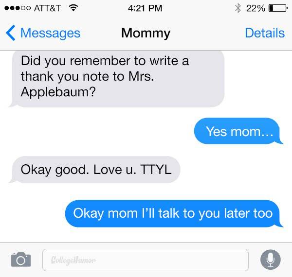 外国的骚年和妹子聊天,基本不写完整的单词句子,一言不合就缩写。美国的中老年家长为了跟上下一代思想,有时也强行缩写一把: