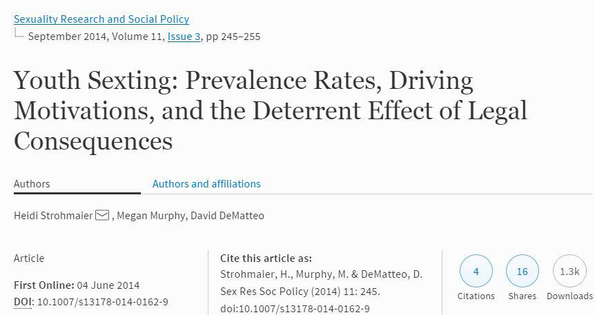这里要给大家科普下sext的法律常识,也是很多美帝骚年忽略的:与未成年人sexting,法庭倾向于判决为儿童色情,这在美国是重罪!要坐牢或给你添一笔性侵犯记录。