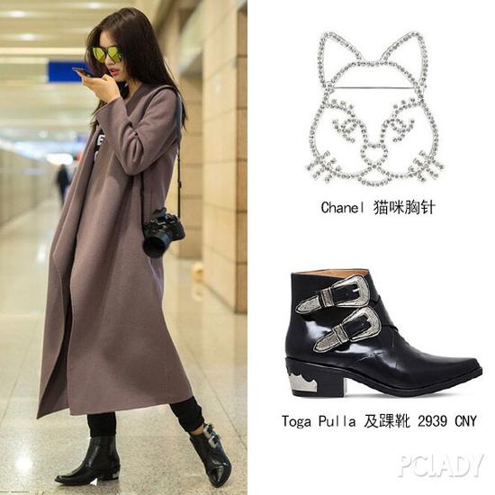林允一袭低调的灰色风衣时髦又不失优雅,搭配的Toga Pulla尖头踝靴修饰腿型,肩头的相机倒凸显几分文艺气质。