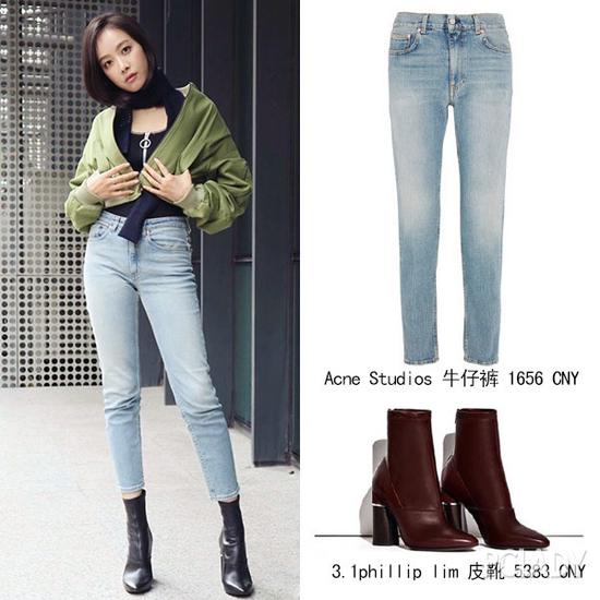 2 J' Y$ B/ X: _ 宋茜这身look配色清新也够保暖,Rosie Assoulin短款飞行员夹克,搭配Acne Studios牛仔裤,加上黑色的酷帅短款皮靴,酷帅活力又不乏干练大方,完美秀胸以下全是腿的即视感,半扯下飞行员夹克,露出迷人小性感。