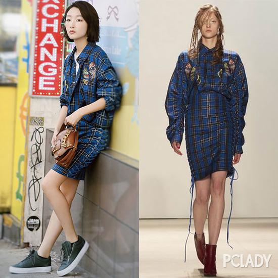 1 K4 ]2 U H# d: `! m M( j& d$ B( m 周冬雨这身搭配够清爽,Kye Seoul格纹衬衫内搭白T和半身裙,搭配了Vans运动鞋,比模特的搭配要时髦的多,衬衫半塞进裙子里,多了些率性潇洒的味道,这很七月嘛。